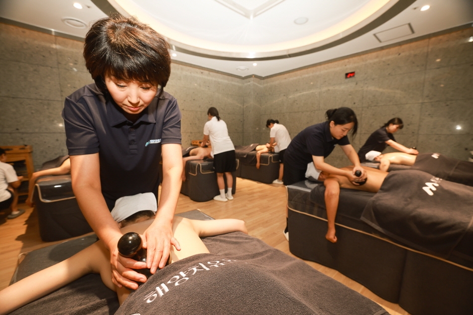 Открывшийся в ноябре 2023 года Центр морского оздоровления Вандо – это первое в Корее пространство, предлагающее оздоровление морем. Здесь проводится 16 программ морского оздоровления, включая бассейны для талассотерапии и медитации с использованием морской воды, пенную терапию, спа с морскими водорослями, стоунтерапию и др. В талассобассейне центра используется морская вода с пляжа Синчжи, прошедшая двойную фильтрацию. Все средства для процедур по программам морского оздоровления изготавливаются из региональных продуктов Вандо, таких как ламинария, водоросли вакамэ и хидзики, цитрус юдзу и др. Если объединить возможности Центр оздоровления морским климатом и Центра оздоровления морской культурой, можно принять участие в более насыщенных велнес-программах. В Центре оздоровления морским климатом проводятся занятия по скандинавской ходьбе, йоге и медитации на пляже, а в Центре оздоровления морской культурой – кулинарные, ремесленные мастер-классы и мастер-классы по ароматерапии.