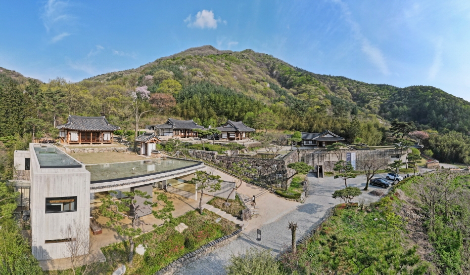 Если подняться по узкой лестнице, соединяющей музей и сад, один за другим путешественника встречают изящные традиционные дома. Слева от небольших возвышающихся ворот находится павильон Манхючжон, а прямо напротив павильона – стоящие наравне павильоны Саранчхэ и Анчхэ. За Саранчхэ расположено отдельно стоящее здание, построенное по технологии «голого» бетона – единственное современное здание в этом месте. Представленный в январе 2023 года содан (традиционная школа) разместился в отдельном пространстве рядом с павильоном Саранчхэ. Этот ханок с собственным садом оформлен как полностью самостоятельное пространство с отдельным входом и каменной оградой.