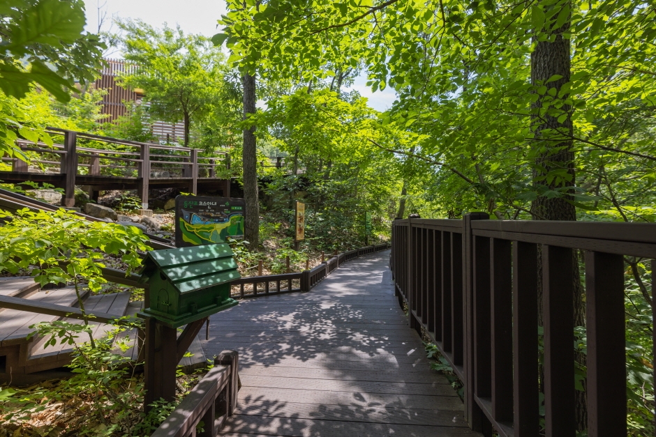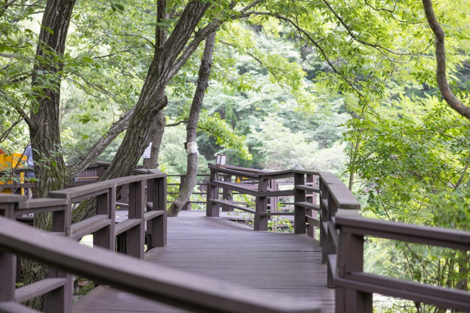 Национальный центр лесных активностей Чхильгок – это оздоровительный лесной комплекс, ставший природной игровой площадкой и зоной отдыха для детей и взрослых. Центр расположен у подножия густо покрытой зеленью горы Юхаксан, окружен со всех сторон лесом, а рядом находится небольшое водохранилище. Достаточно провести здесь всего один день и прогуляться, чтобы почувствовать, как усталость, накопившаяся в городе, постепенно уходит. Если внимательно прислушаться, можно уловить лишь шелест листьев на ветру и пение птиц. Именно поэтому снова и снова хочется гулять по настилу у водохранилища, наслаждаясь бесконечной энергией гор.
