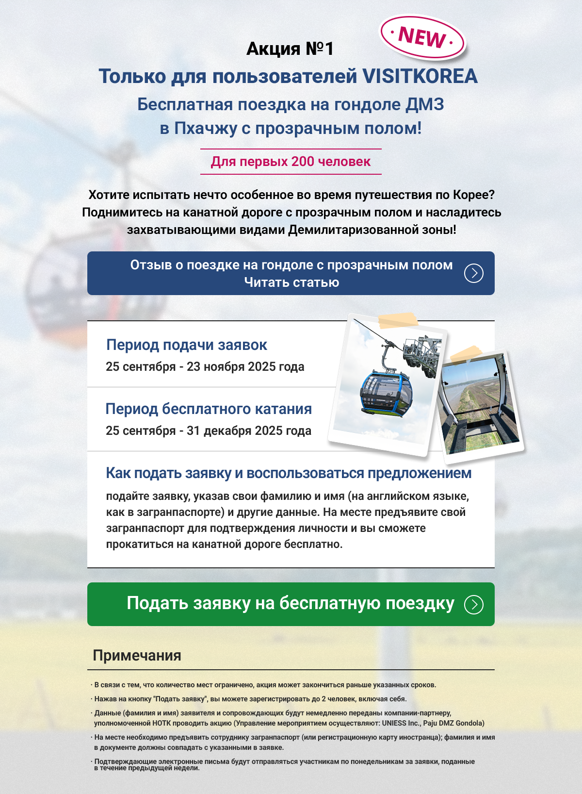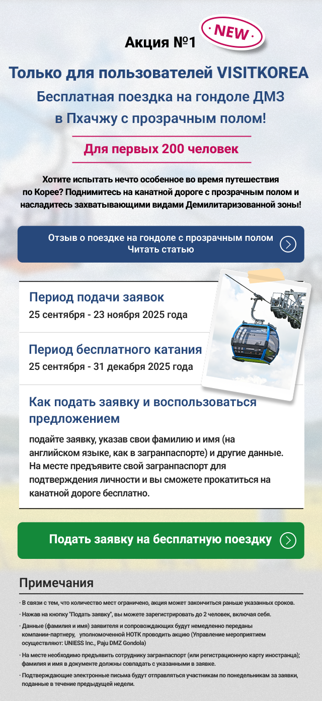 Покажите иконку приложения VISITKOREA в своем телефоне при покупке билета на кассе гондолы (канатной дороги)