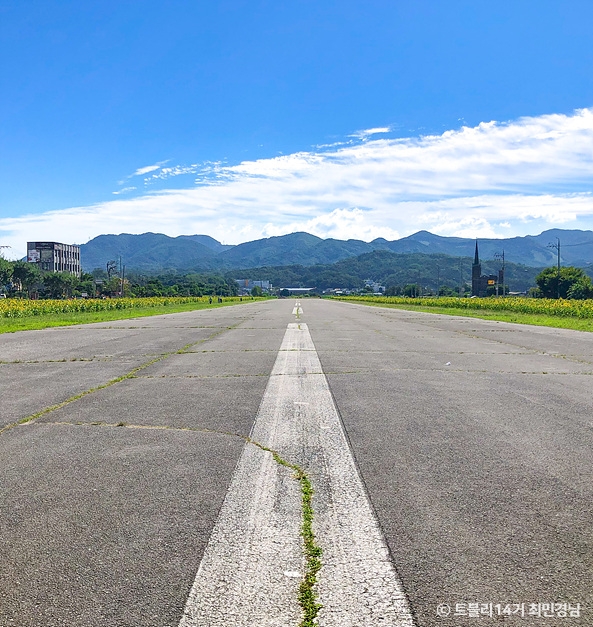 Широкая взлетно-посадочная полоса, вдоль которой семеро участников группы BTS медленно идут в музыкальном клипе «EPILOGUE: Young Forever». Построенный в 1950-х годах аэродром изначально использовался в военных целях, а сейчас он преобразован в городской парк отдыха и фотозону BTS.